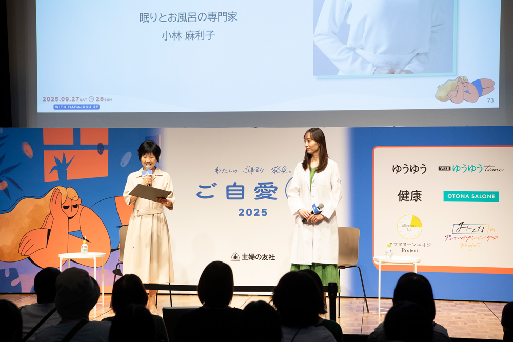 お風呂と睡眠の専門家・小林麻利子先生が登壇し、日々の睡眠環境を整えるための具体的なポイントや、体温コントロール・入浴法など、“ぐっすり眠るためのコツ”を紹介しました。